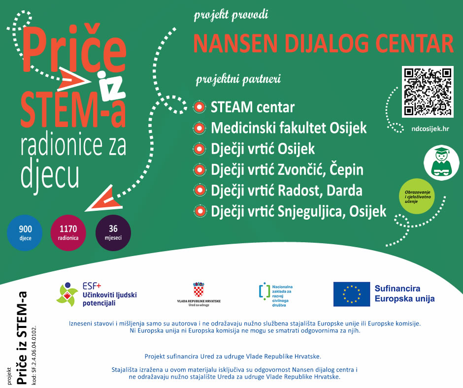 Projekt sufinancira Europska unija iz Europskog socijalnog fonda+. Izneseni stavovi i mišljenja samo su autorova i ne odražavaju nužno službena stajališta Europske unije ili Europske komisije. Ni Europska unija ni Europska komisija ne mogu se smatrati odgovornima za njih. Projekt sufinancira Ured za udruge Vlade Republike Hrvatske. Stajališta izražena u ovom materijalu isključiva su odgovornost Nansen dijalog centra i ne odražavaju nužno stajalište Ureda za udruge Vlade Republike Hrvatske.